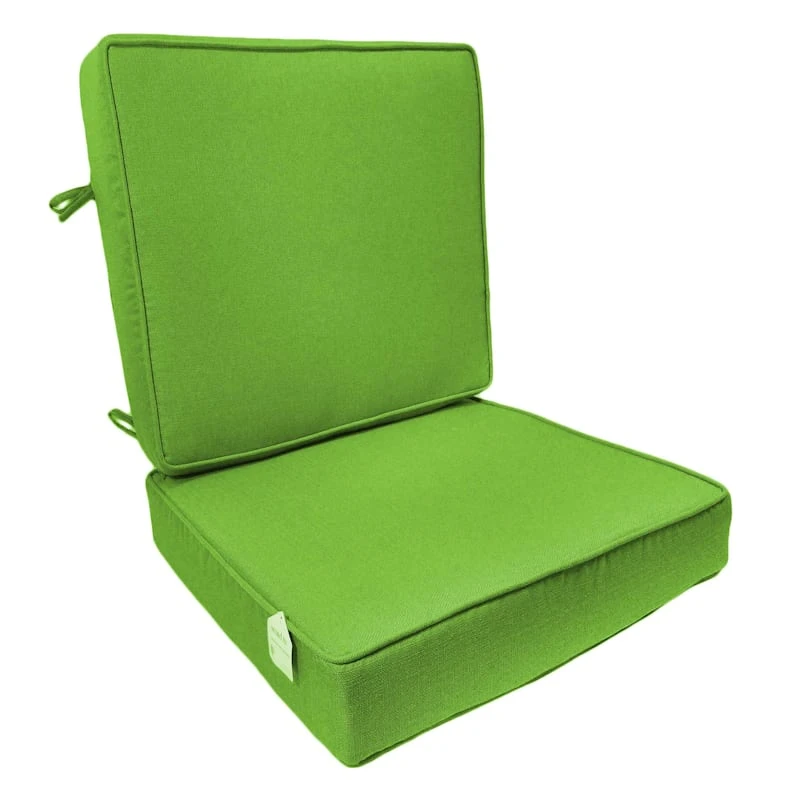 Our outdoor cushions are durable and ready to stand up to the elements. Polyester construction and all-weather capability make this 2-piece chair pad is a must-have for outdoor entertaining. With the fashion-forward kiwi green canvas gusseted outdoor deep seat cushion set, you can create a stunning patio, porch or deck that will be the talk of the neighborhood. Check our overall selection for a variety of shapes, sizes, patterns and colors to fit the personality of your patio.