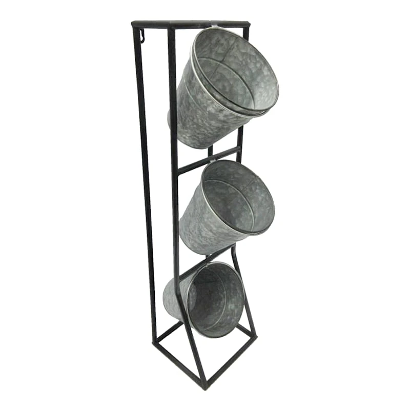 3-Stacked Metal Planters With Shelf