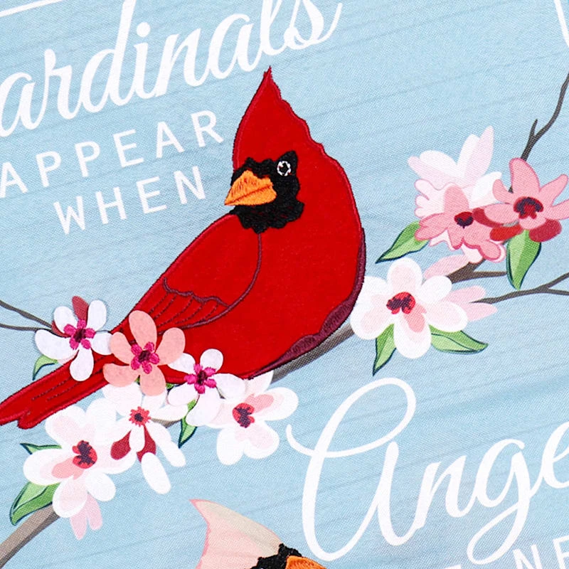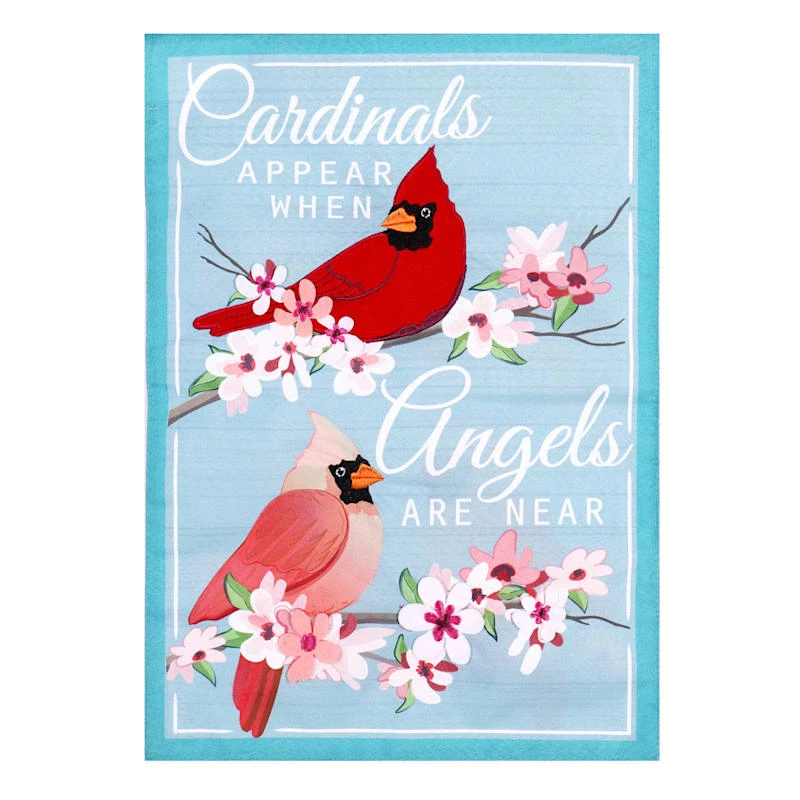 Welcome visitors into your home with our sweet “Cardinals appear when Angels are near” garden flag. Featuring a colorful outdoor motif, this welcome sign is a great way to greet your guests. The wonderful multicolor cardinal duo and floral branch detailing are a nice pop to help get the warm days ahead started. This is the perfect spring or summer decoration to welcome in the new season and guests, too.