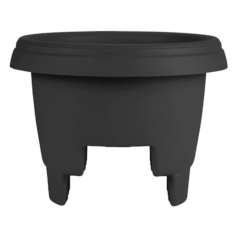 Highlight your green thumb and showcase your annuals and perennials at your front door or add a touch of festive foliage to your covered deck with our stylish 12in. black plastic deck rail planter. More than just a spot to display your gardening skills, this solid color pot offers a sleek, contemporary appearance with its wonderful design. Created to live outdoors and to beautify your deck, it’s ready to make your plants pop.