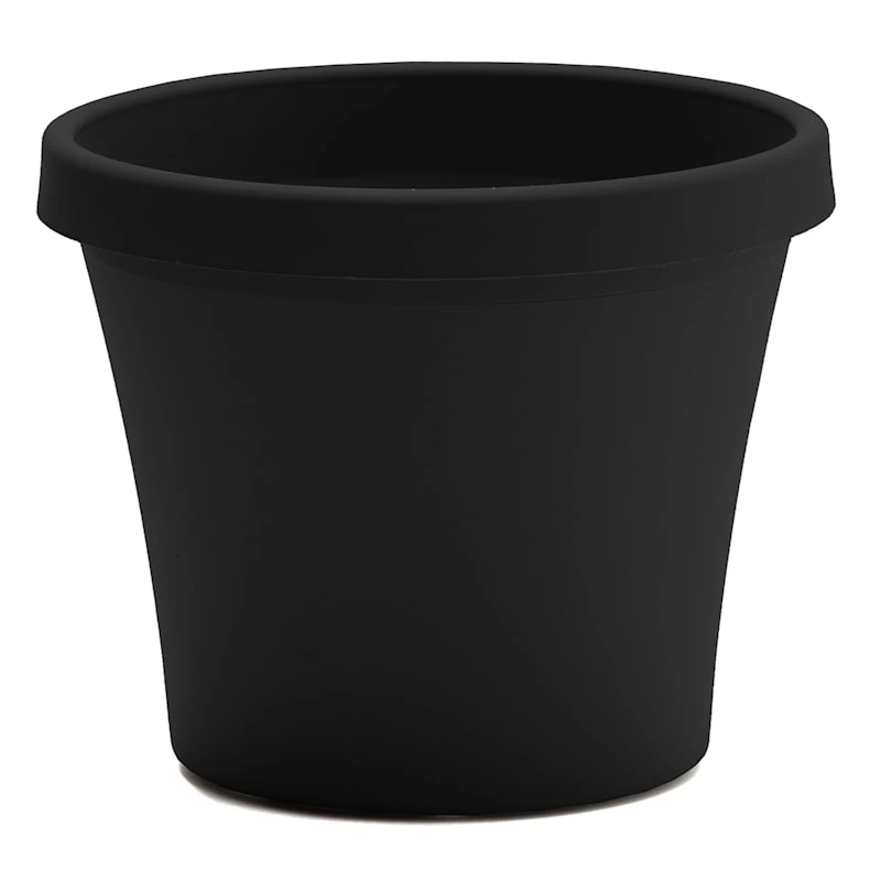 Highlight your green thumb and showcase your annuals and perennials at your front door or add a touch of festive foliage to your covered deck with our stylish 16in. Terra Living black rimmed plastic pot. More than just a spot to display your gardening skills, this solid color planter offers a sleek, contemporary appearance with its wonderful design. Created to live indoors, outdoors or in a covered outdoor space, it’s ready to make your plants pop.