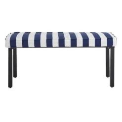 Providence Navy Blue Awning Striped Gusseted Outdoor Bench Cushion