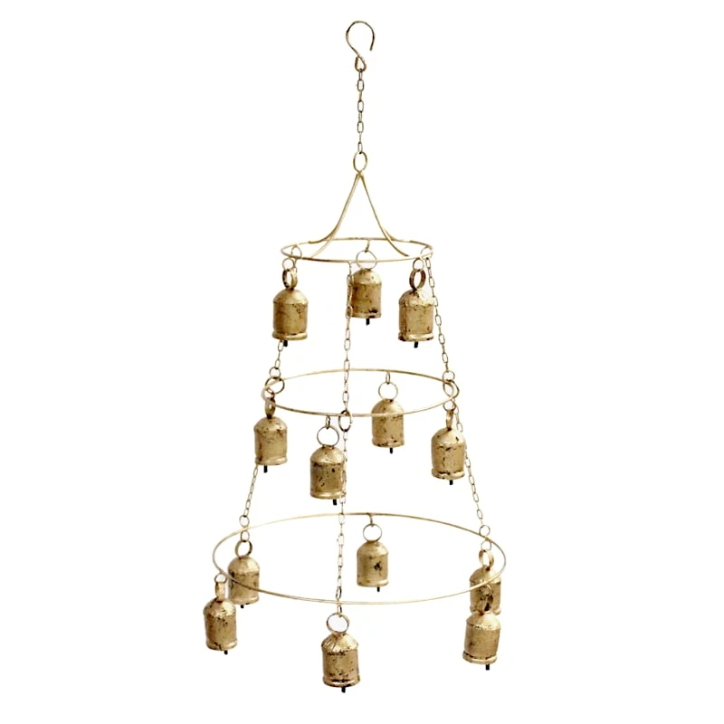 Found & Fable is a new collection that lets you explore what’s right around the corner. Choose your own adventure every day. Savor it all and say yes to what comes next—exclusively At Home. A wonderful golden 3-tier metal adorns our 25in. circular bell windchime to give a clear and graceful sound. Wind chimes are symbolic of serenity and tranquility and are also thought to bring luck to whoever listens to them. The perfect gift for the outdoor lover.