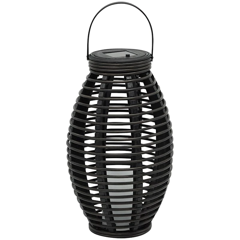 Found & Fable LED Candle Black Faux Rattan Solar Barrel Lantern, 13"