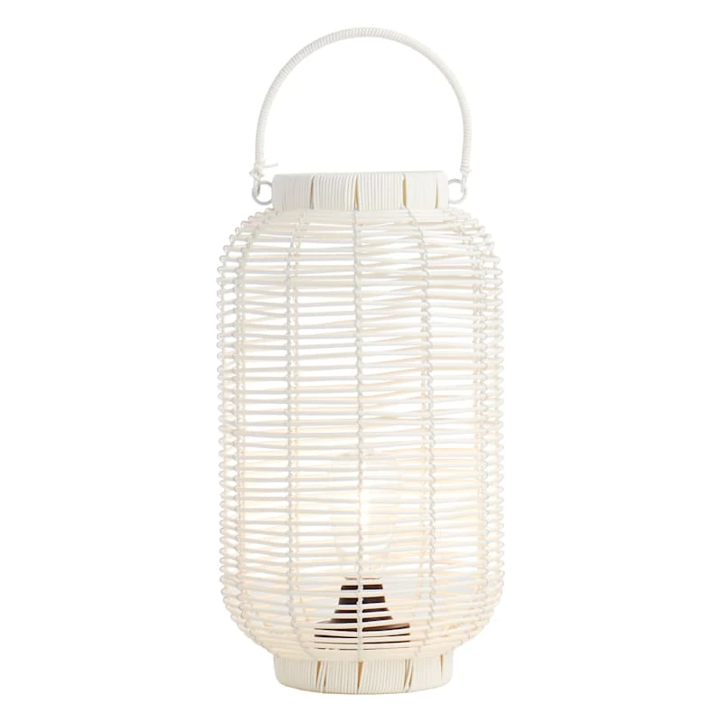 Found & Fable is a new collection that lets you explore what’s right around the corner. Choose your own adventure every day. Savor it all and say yes to what comes next—exclusively At Home. Our 15.5in. white faux wicker barrel LED lantern is the perfect addition to any home decor, inside or out. The illuminating bulb lights from within and adds to the overall ambience. The flexible handle makes it easy to hang from any hook, or it can also be set on the hearth, bookshelf or on the patio table, too.
