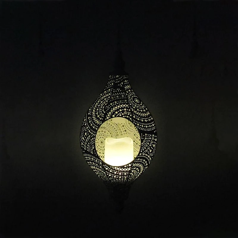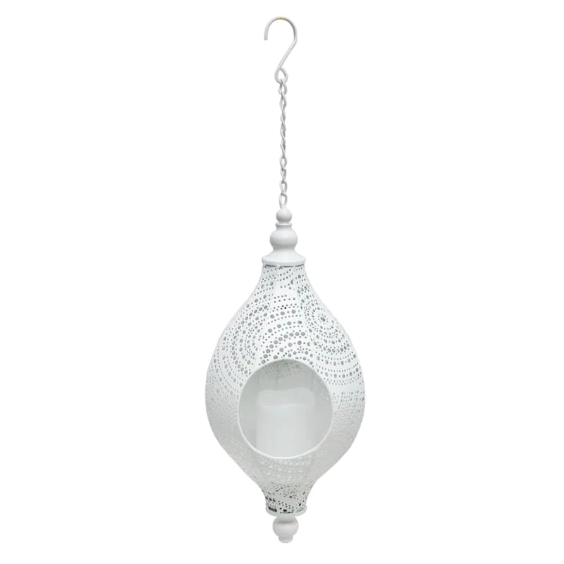 Found & Fable is a new collection that lets you explore what’s right around the corner. Choose your own adventure every day. Savor it all and say yes to what comes next—exclusively At Home. Add a charming touch to any outdoor space with our solar punched metal Moroccan style hanging lantern. An LED candle within automatically illuminates at dusk, creating a magical glow. The beautiful bright white patina is complemented by a classic metal drop design with a simple metal hook on chain. This outdoor lantern will make a stunning display in your garden or on your patio.