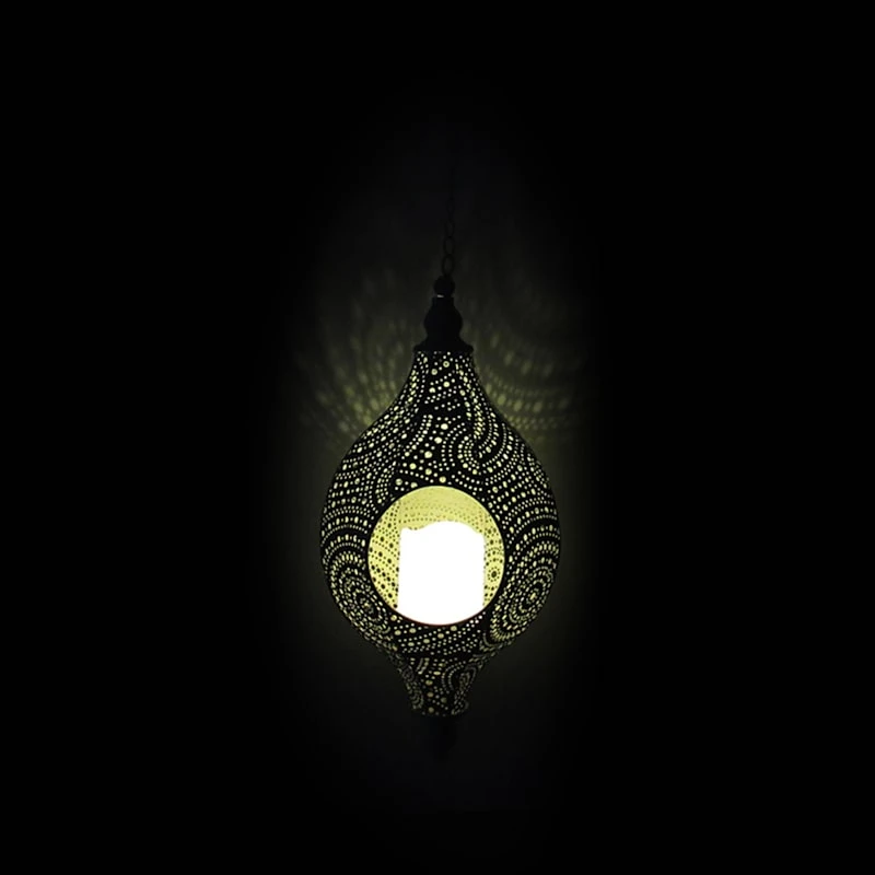 Found & Fable is a new collection that lets you explore what’s right around the corner. Choose your own adventure every day. Savor it all and say yes to what comes next—exclusively At Home. Add a charming touch to any outdoor space with our solar punched metal Moroccan style hanging lantern. An LED candle within automatically illuminates at dusk, creating a magical glow. The beautiful bright white patina is complemented by a classic metal drop design with a simple metal hook on chain. This outdoor lantern will make a stunning display in your garden or on your patio.