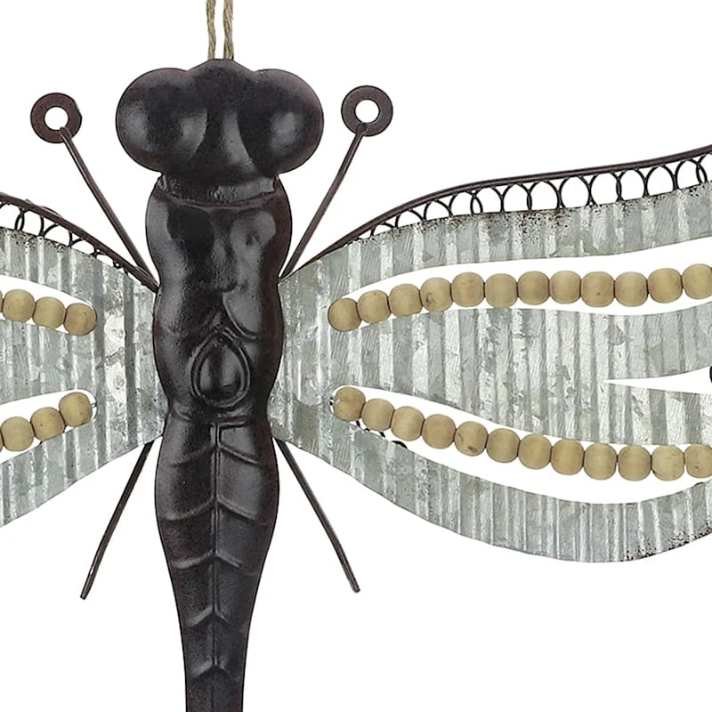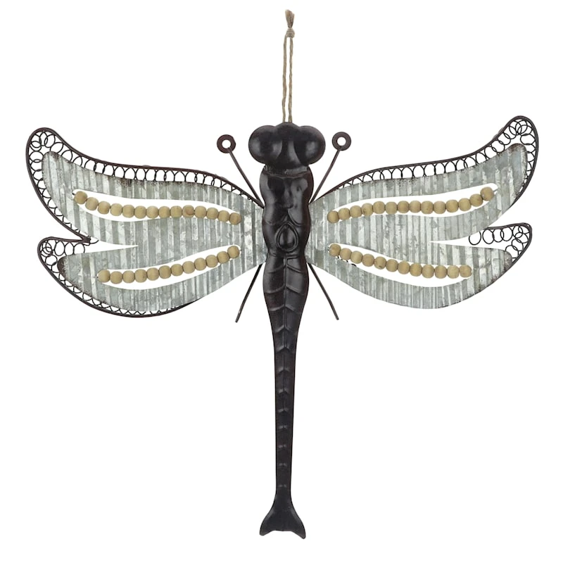 Add a pinch of fun to your garden with our 18.5in. natural galvanized metal dragonfly wall plaque. Created with love, this simple sign features a rustic metal and wood bead motif. Everyone will enjoy the sweet welcome. Made of rust-resistant metal with a rope hanger, this wall decor is designed to greet guests all season long.