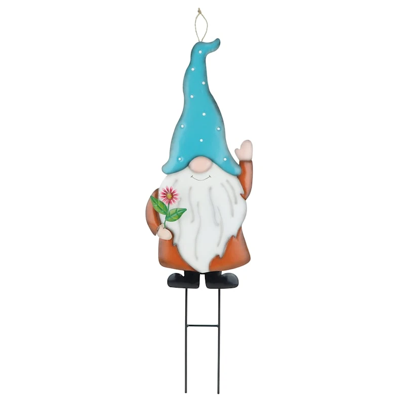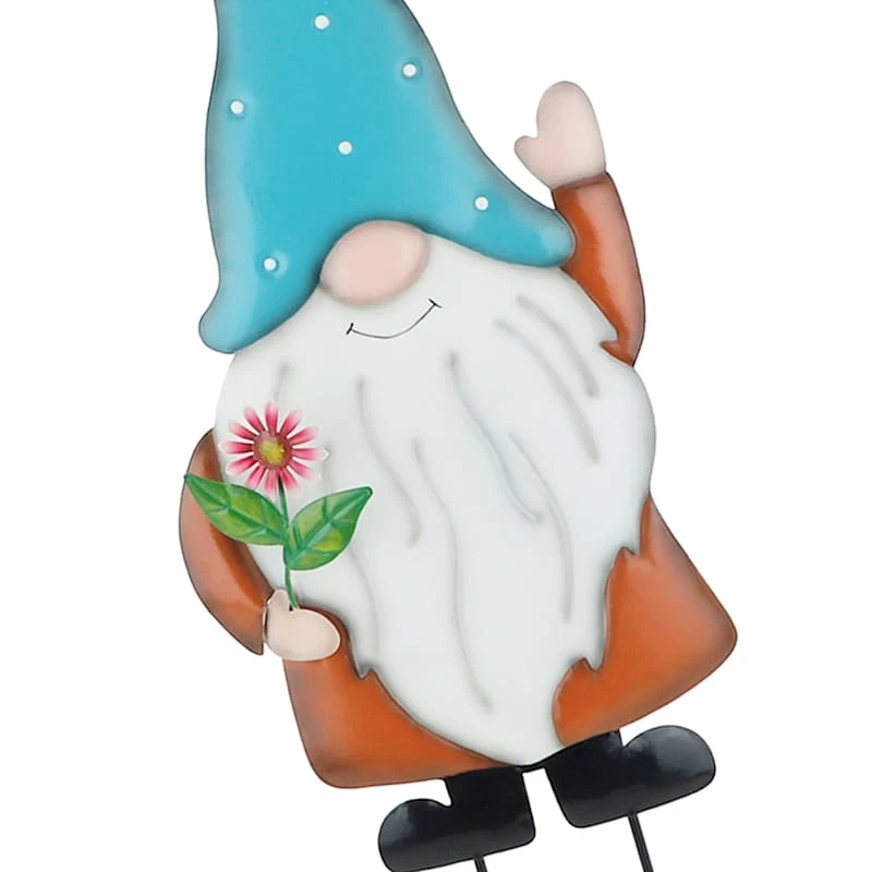 Gnome With Blue Hat Metal Garden Stake, 31"
