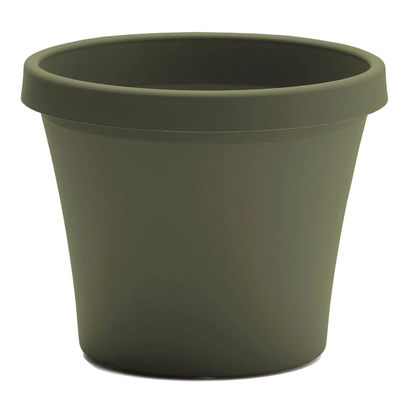 Highlight your green thumb and showcase your annuals and perennials at your front door or add a touch of festive foliage to your covered deck with our stylish 14in. Terra Living green plastic classic rimmed planter. More than just a spot to display your gardening skills, this terracotta-look pot has a simple, traditional appearance with its wonderful design. Created to live indoors or out, it’s ready to make your plants pop.