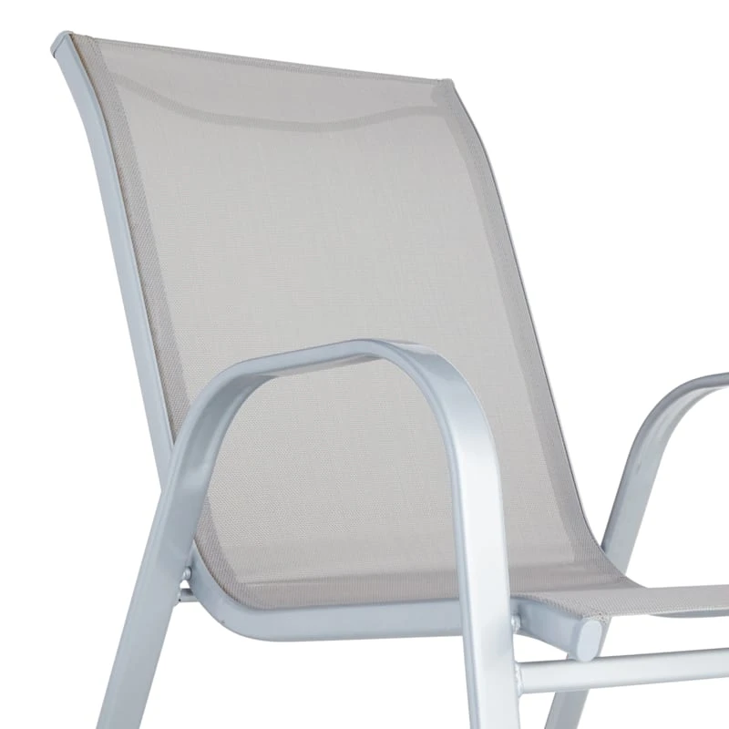Escape the indoors and get outdoors with our stackable grey Sling patio chair. Buy in multiples and be sure to have enough outdoor seating for family and friends. This outdoor metal dining chair features a simple streamlined look with a metal frame and a comfortable mesh fabric that’s breathable. These stacking chairs will last even longer if protected from the elements. Pair with any patio table or garden stool and enjoy the great outdoors to the fullest.