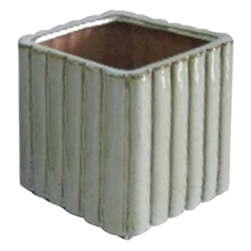 Highlight your green thumb and showcase your annuals and perennials at your front door or add a touch of festive foliage to the deck with our simple yet stylish planter. More than just a spot to display your gardening skills, this wonderful 8in. grey ceramic square vertical texture pot offers a wonderful artistic appearance with its solid shiny natural grey surface, vertical pillars and square shape. Designed to live indoors or on a covered patio, this glazed ceramic planter is ready and waiting to make your plants pop.