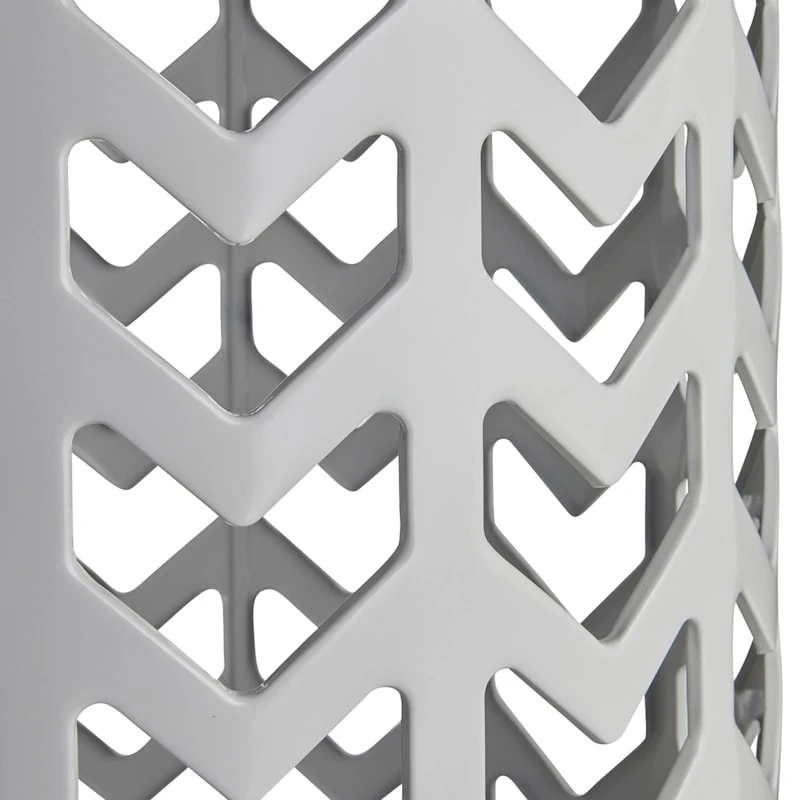 Give your plants a fun spot to hang out with our 18in. round grey metal chevron plant stand. Featuring a cool cylindrical design, this piece will be right at home inside or out. Whether setting up a garden room, or simply looking to save a plant from the chilly outdoors, this stand is a great option for ornamenting your home.