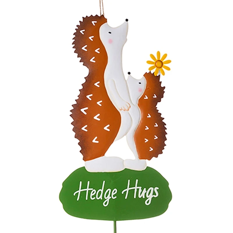 Featuring a colorful hedgehog motif with “Hedge Hugs” sentiment, this garden stake is the perfect decor to beautify any garden. Crafted of bright, colorful metal, this fun little sign will bring joy for years to come.