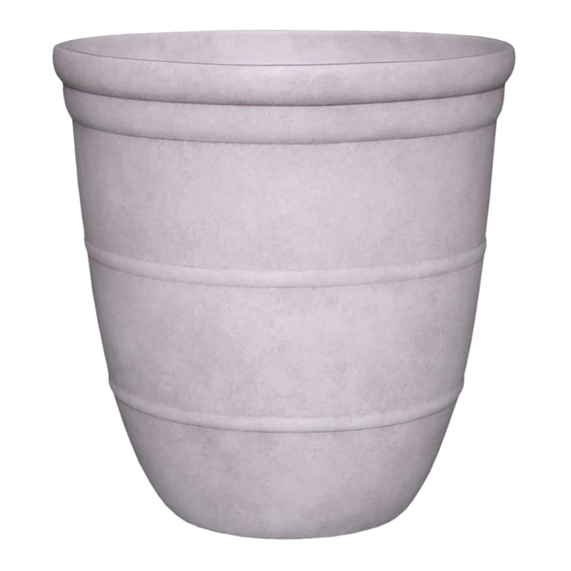 Highlight your green thumb and showcase your annuals and perennials at your front door or add a touch of festive foliage to the deck with our simple yet stylish planter. More than just a spot to display your gardening skills, this wonderful 14in. Ares white stone-look planter offers a wonderful artistic appearance with its simple solid white/grey surface and layered rim curved shape. Designed to live indoors or on a covered patio, this plastic planter is ready and waiting to make your plants pop.