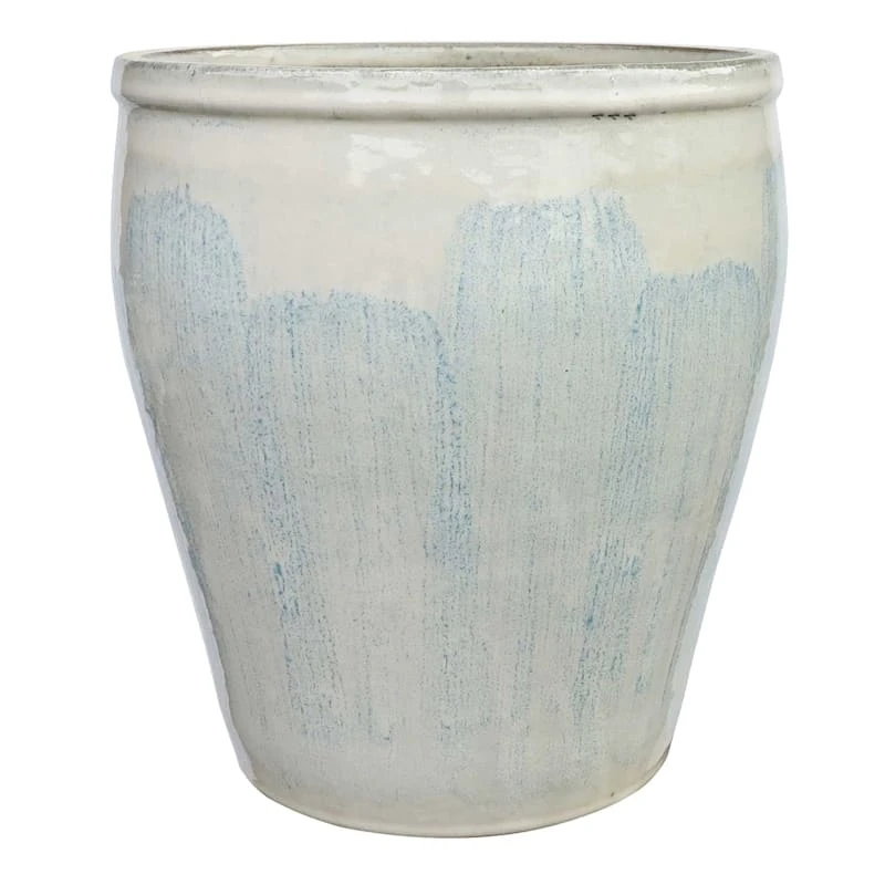 Highlight your green thumb and showcase your annuals and perennials at your front door or add a touch of festive foliage to your deck with our 18in. blue and white Berlin ceramic planter. More than just a spot to display your gardening skills, this pot has a charming appearance with its wonderful cylindrical and brushstroke design. Created to live indoors or out, it’s ready to make your plants pop.