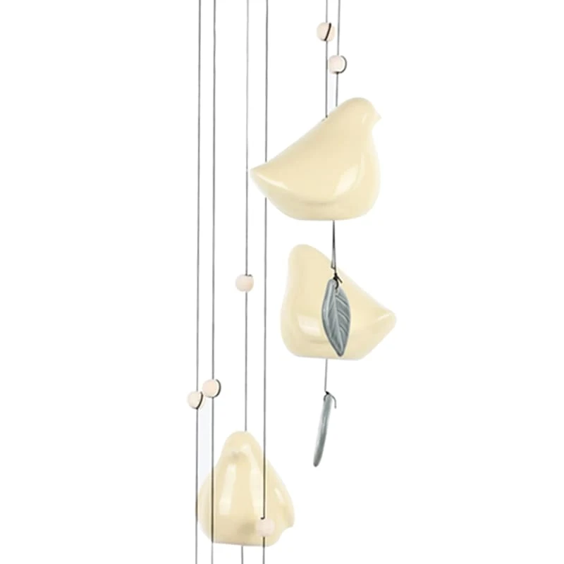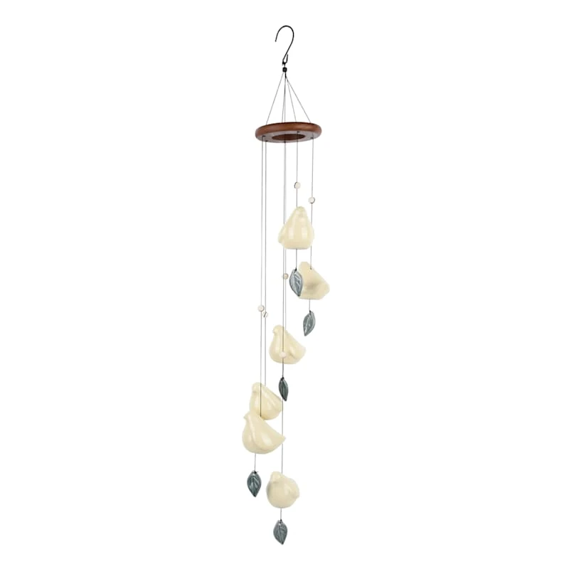 Honeybloom Cream Ceramic Bird Wind Chime, 35.8"