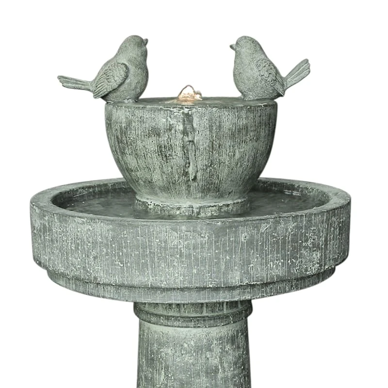 Enjoy calming echoing water sounds with our 29.5in. pedestal bird fountain. This decorative birdbath fountain is sure to bring peace, serenity and class to your garden, patio, porch or deck while beautifully blending in with the surrounding decor. Create a calming and meditative atmosphere with this soothing, trickling waterfall fountain. Durable and long-lasting, it�s made of stone-like resin to ensure years of enjoyment.