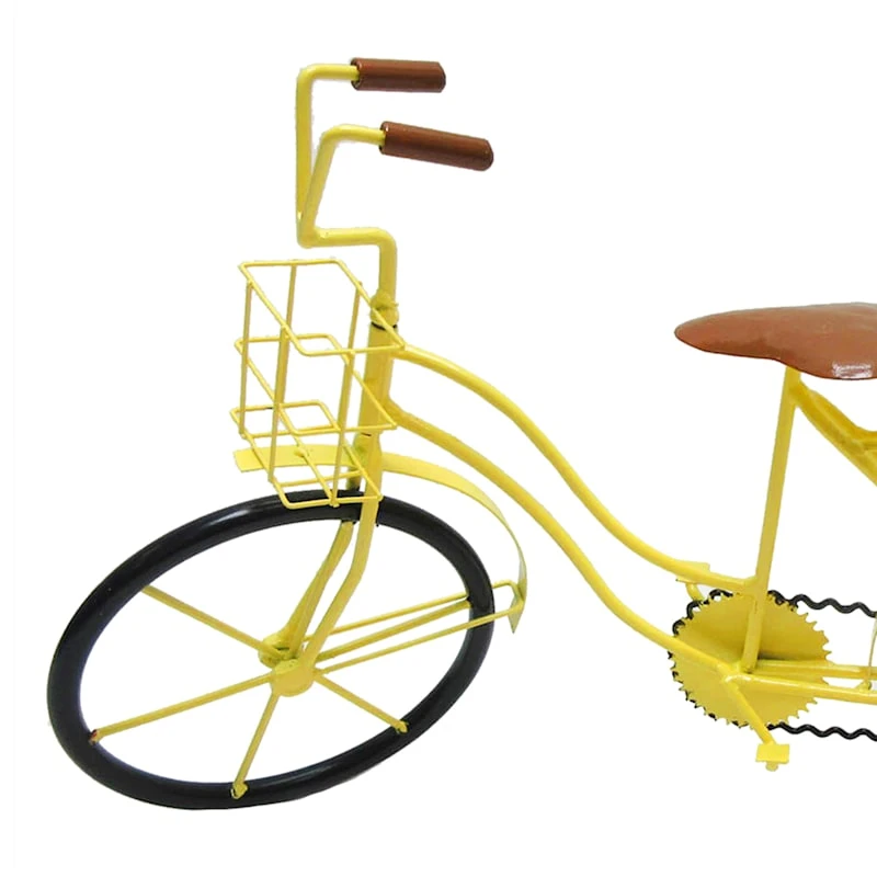 Modern farmhouse meets At Home prices in Honeybloom, our exclusive new brand that celebrates life lived together. Our 18in. yellow bicycle garden decor is the perfect decoration for landscape lovers. This wonderful figural metal outdoor decor piece features a brightly colored bicycle ready to keep guard in your garden. With the wonderful details, this figurine adds a touch of personality to any outdoor space.