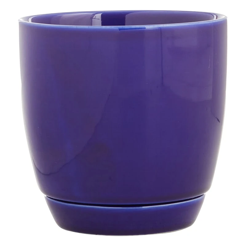 Highlight your green thumb and showcase your annuals and perennials at your front door or add a touch of festive foliage to the deck with our simple yet stylish ceramic planter. More than just a spot to display your gardening skills, this wonderful 6in. Elsie blue ceramic pot offers a sleek contemporary appearance with its interesting smooth design, matching saucer and curved shape. Designed to live indoors or on a covered patio, this ceramic planter is ready and waiting to make your plants pop.