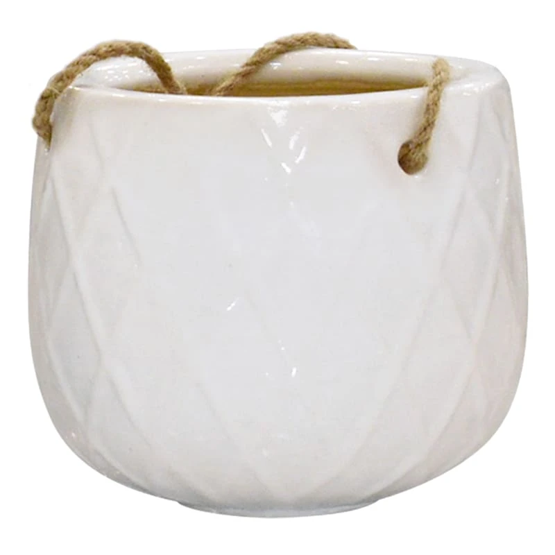 Indoor Hanging White Woven Textured Ceramic Pot, Medium
