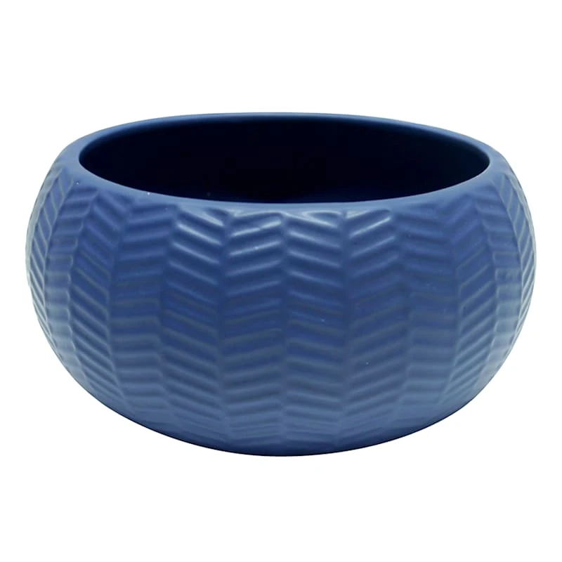 Highlight your green thumb and showcase your annuals and perennials at your front door or add a touch of festive foliage to the deck with our simple yet stylish planter. More than just a spot to display your gardening skills, this wonderful 3x7in. navy blue herringbone bowl planter offers a wonderful artistic appearance with its low profile body and allover zig-zag texture. Designed to live indoors or on a covered patio, this ceramic pot is ready and waiting to make your plants pop.