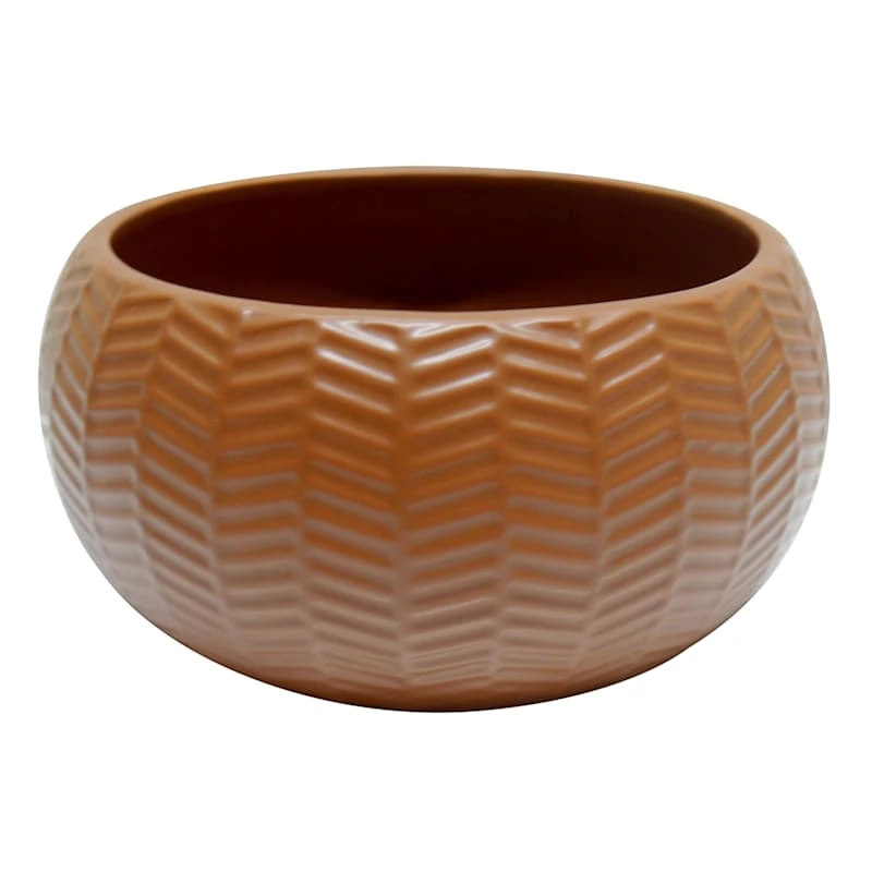 Indoor Terra Herringbone Textured Bowl Planter, 3.3×7