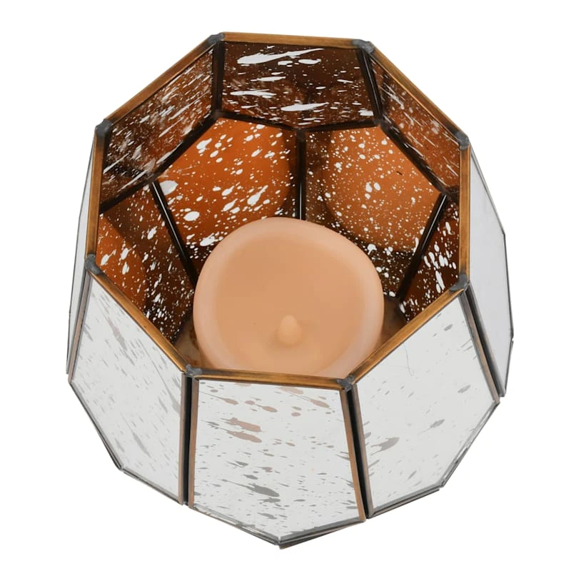 Mercury Glass Multi-Faceted Tabletop Lantern, 9.8"