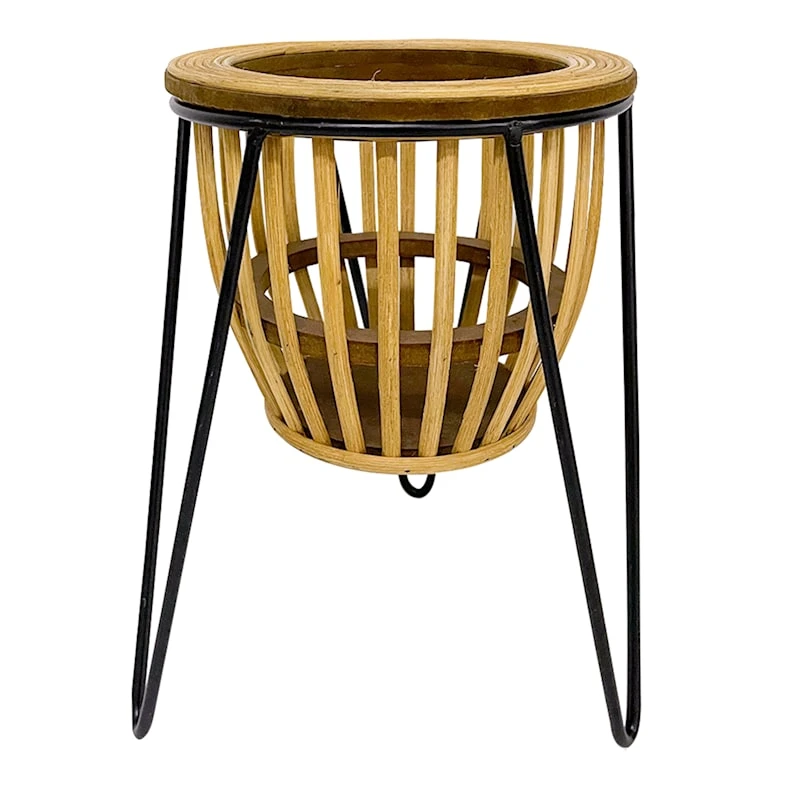 Metal & Rattan Plant Stand, Small