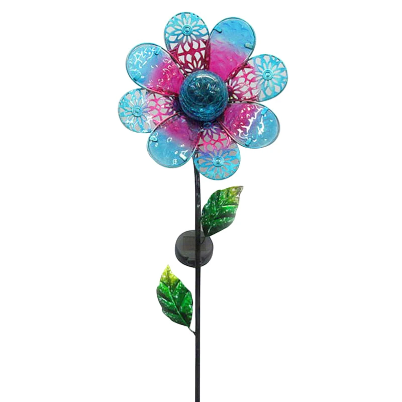 Always in bloom, our blue and pink metal cutout flower garden stake is a real beauty. This gorgeous solar-powered light will automatically illuminate your outdoor space at dusk, bringing your garden warmth and charm all year long. Makes a wonderful gift for the avid gardener.