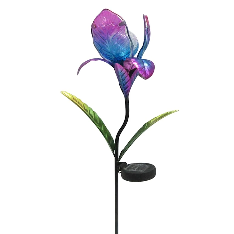 Always in bloom, our blue/purple glass iris flower garden stake is a real beauty. This gorgeous light will automatically illuminate your outdoor space at dusk, bringing your garden warmth and charm all year long. Makes a wonderful gift for the avid gardener.