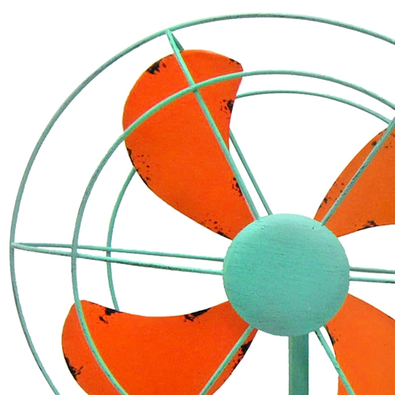 Our metal oscillating fan wind spinner is the perfect garden decoration for lovers of whimsy. This kinetic spinner features interior fan blades that are placed to rotate in the breeze. With brightly colored painted metal details, this whirligig adds a touch of personality and motion to any outdoor space.