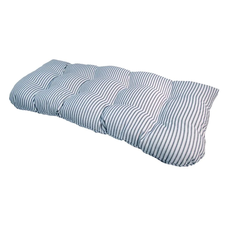 Navy Blue Tick Striped Outdoor Wicker Settee Cushion