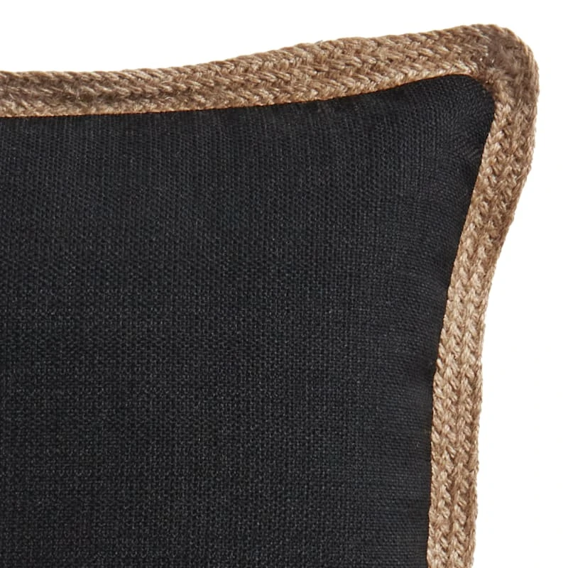 Olinen Black Outdoor Throw Pillow With Jute Trim, 18"