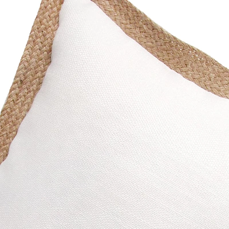 Olinen White Outdoor Throw Pillow With Jute Trim, 18"