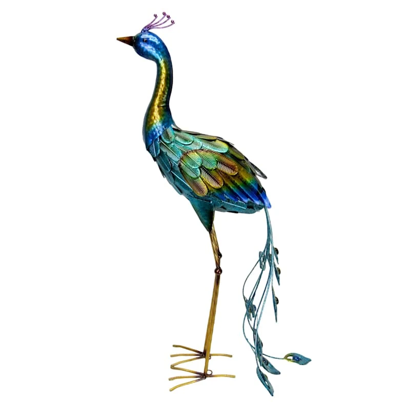 Outdoor Green & Blue Metal Peacock Figurine, 35.5"