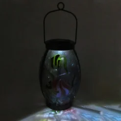 Underwater Scene Glass Solar Lantern With Metal Handle, 9.5"