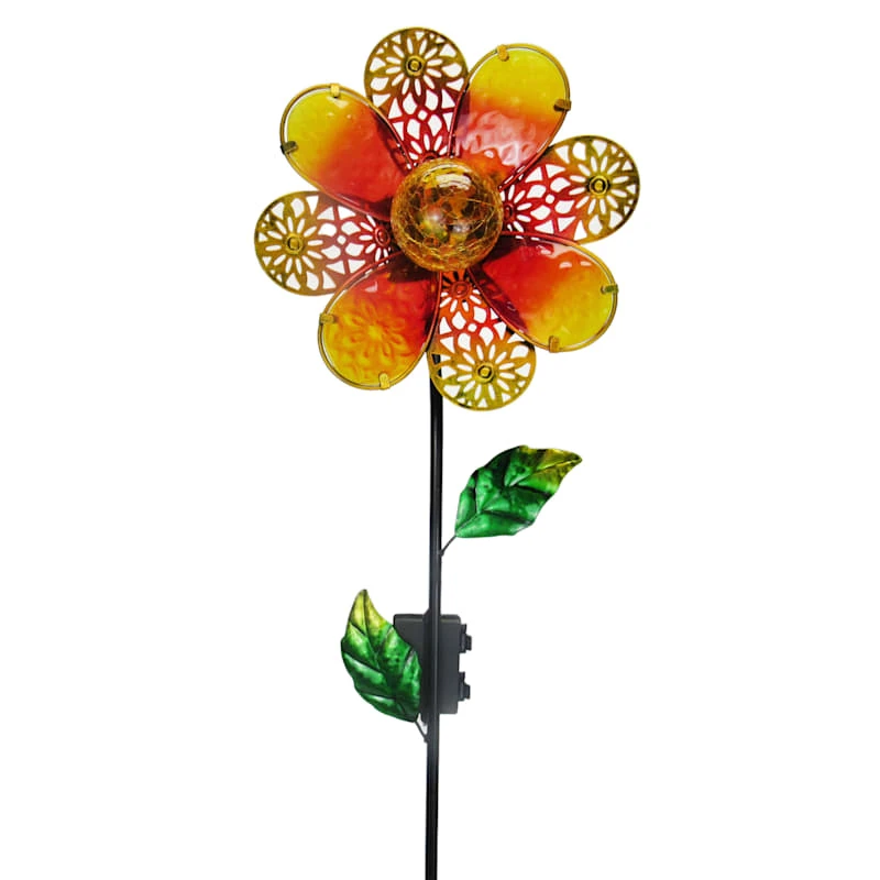 Add a pinch of fun to your garden with our colorful metal 40in. yellow multi flower decorative lighted garden stake. Created with love, this detailed metal piece features a dual pointed base with a detailed floral and leaf design. Everyone will enjoy the charming subject matter tucked into your prolific garden. Made of rust-resistant metal, this garden stake is designed to bring a natural touch to your landscaping.