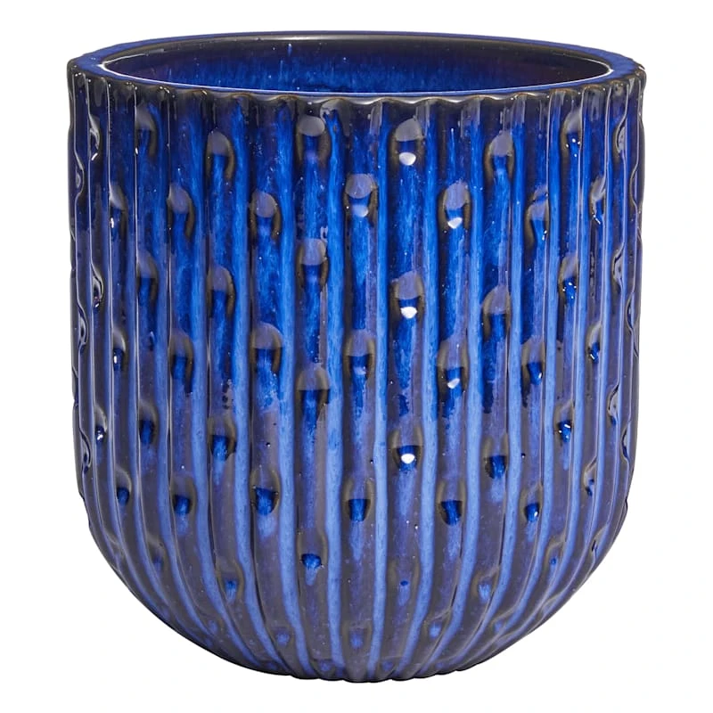 A collection that lets everyone relax in style. Polished finishes and classic hues pair with fun finds. Providence is where elegant settings still feel comfortable and warm—exclusively At Home. Highlight your green thumb and showcase your annuals and perennials at your front door or add a touch of festive foliage to your deck with our stylish 12in. blue round dimple garden pot. More than just a spot to display your gardening skills, this unique planter has an exotic appearance with its wonderful design. Created to live indoors or out, it’s ready to make your plants pop.