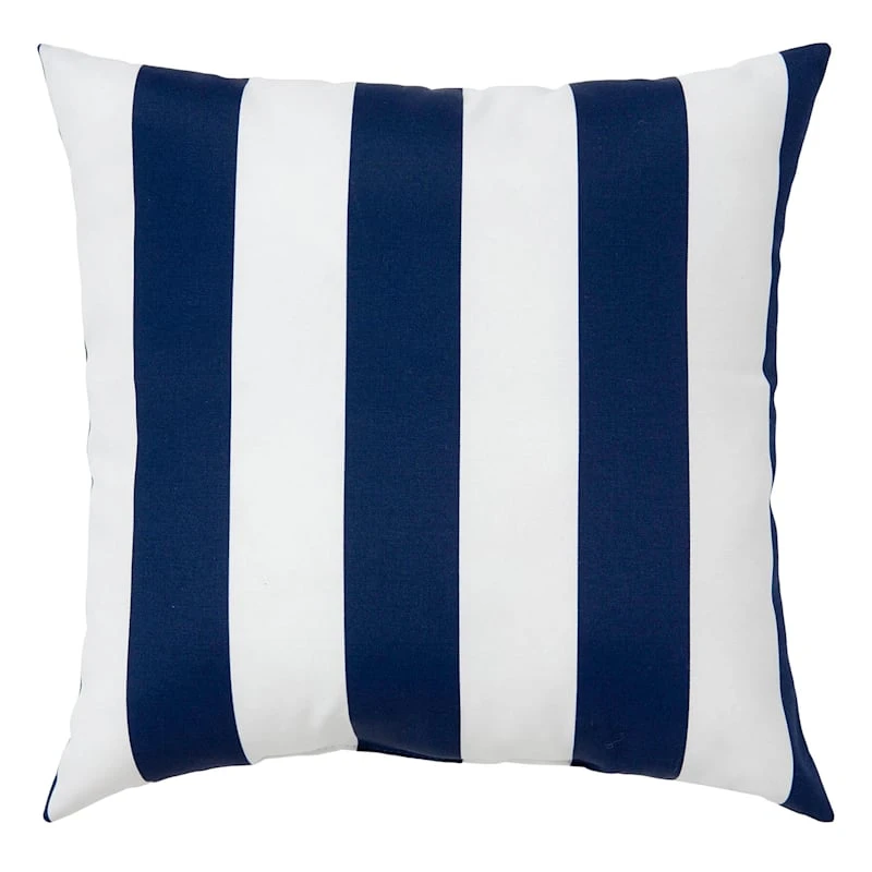 A collection that lets everyone relax in style. Polished finishes and classic hues pair with fun finds. Providence is where elegant settings still feel comfortable and warm—exclusively At Home. Our outdoor cushions are durable and ready to stand up to the elements. Polyester construction and all-weather capability make this navy blue awning stripe 20in. oversized square throw pillow is a must-have for outdoor entertaining. With the fashion-forward navy blue and white design, you can create a stunning patio, porch or deck that will be the talk of the neighborhood. Check our overall selection for a variety of shapes, sizes, patterns and colors to fit the personality of your patio.