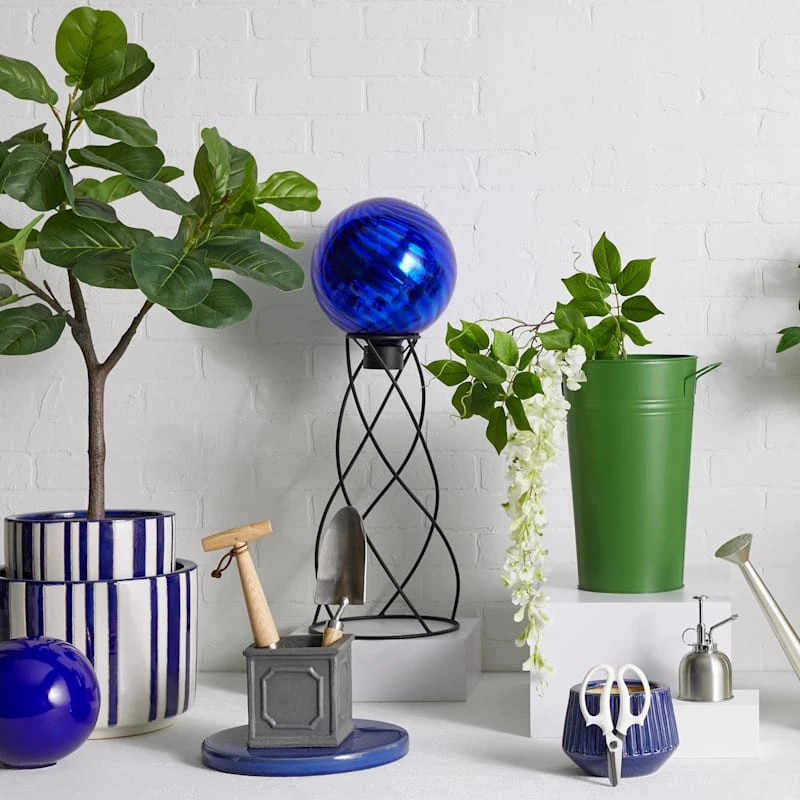 A collection that lets everyone relax in style. Polished finishes and classic hues pair with fun finds. Providence is where elegant settings still feel comfortable and warm—exclusively At Home. Our outdoor 8in. Jase blue garden sphere is a great addition to any garden or landscaped setting. Our garden spheres is made of weatherproof ceramic and have a flat bottom for easy placement on a pedestal or somewhere in the gardenscape.