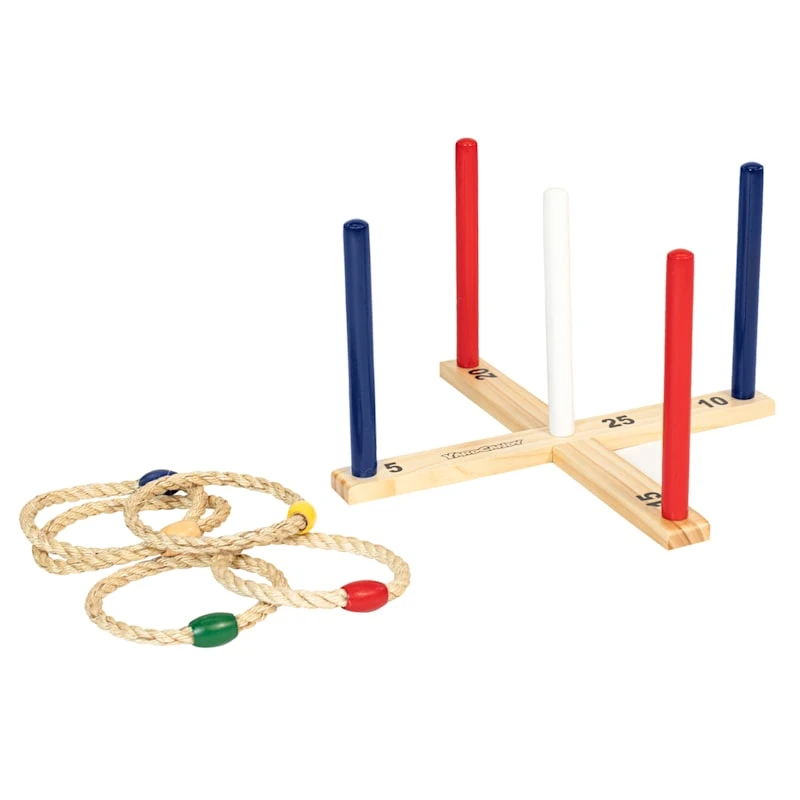 A collection that lets everyone relax in style. Polished finishes and classic hues pair with fun finds. Providence is where elegant settings still feel comfortable and warm—exclusively At Home. Our wooden ring toss game set is a great way to get the entire family together to have a bunch of good old-fashioned fun. Its compact size and easy portability make it a perfect choice for vacations, picnics, tailgating, camping, birthday parties, and game nights. This classic ring toss game includes color-coded dowels with different point assignments and rings.