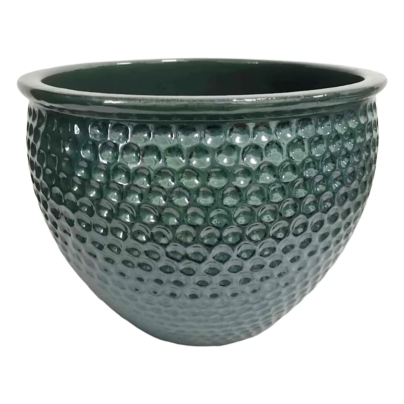 Highlight your green thumb and showcase your annuals and perennials at your front door or add a touch of festive foliage to your deck with our 8in. Rosalind turquoise ceramic planter. More than just a spot to display your gardening skills, this allover dimpled pot has a charming appearance with its wonderful rimmed design. Created to live indoors or out, it’s ready to make your plants pop.