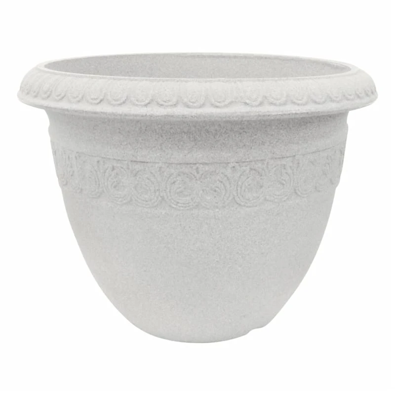 Highlight your green thumb and showcase your annuals and perennials at your front door or add a touch of festive foliage to your covered deck with our stylish 22in. off white synthetic classic rimmed shell planter. More than just a spot to display your gardening skills, this stone-look pot has a simple, traditional appearance with its wonderful design. Created to live indoors or out, it’s ready to make your plants pop.