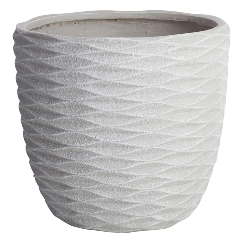 Highlight your green thumb and showcase your annuals and perennials at your front door or add a touch of festive foliage to your deck with our stylish 14in. white Sherwin antique planter. More than just a spot to display your gardening skills, this spackled look oval link design concrete planter has a modern geometric appearance with its light linked cement design. Created to live indoors or out, it’s ready to make your plants pop.