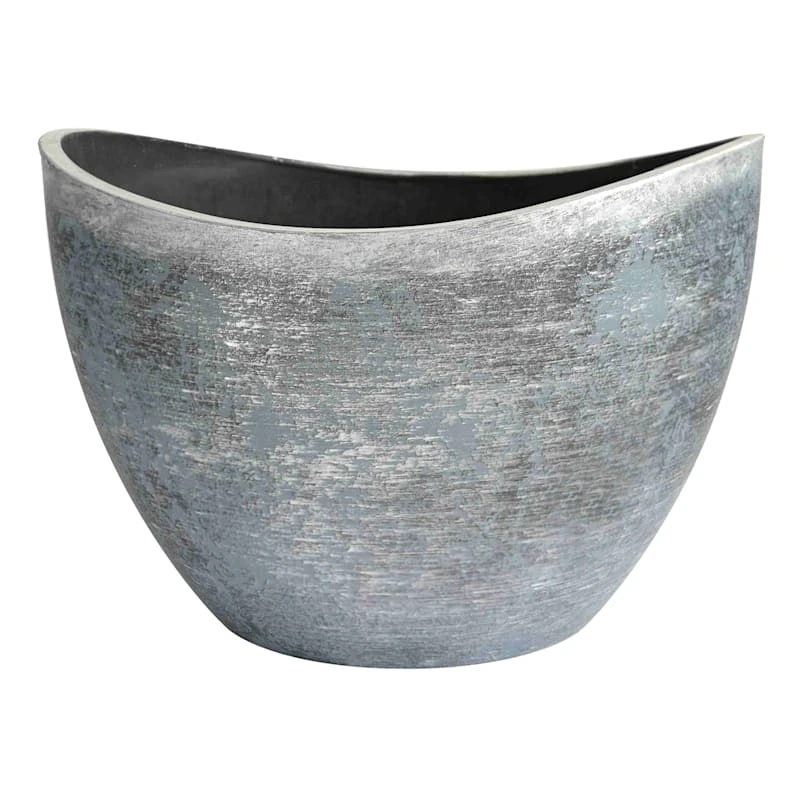 Highlight your green thumb and showcase your annuals and perennials at your front door or add a touch of festive foliage to the deck with our simple yet stylish planter. More than just a spot to display your gardening skills, this wonderful 16.5in. silver metals wave planter offers a wonderful artistic appearance with its weathered surface and wave-like shape. Designed to live indoors or on a covered patio, this metallic plastic planter is ready and waiting to make your plants pop.