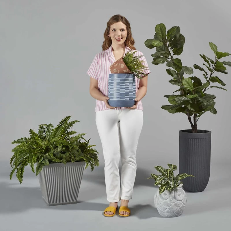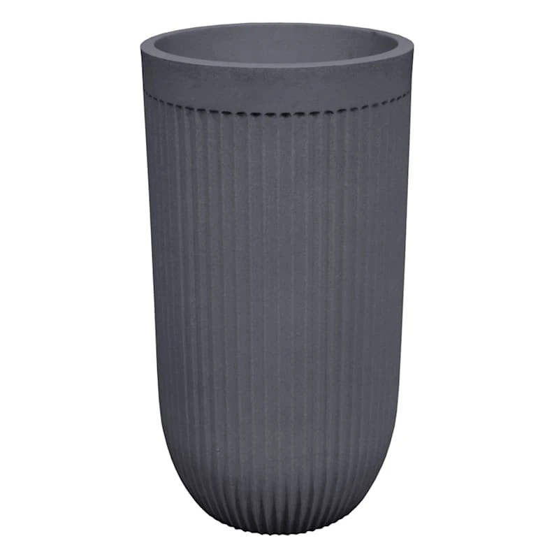 Highlight your green thumb and showcase your annuals and perennials at your front door or add a touch of festive foliage to your deck with our 13in. charcoal tall gray planter. More than just a spot to display your gardening skills, this round cylindrical synthetic pot has a fluted ribbed appearance and a cool, modern design. Created to live indoors or out, it’s ready to make your plants pop.