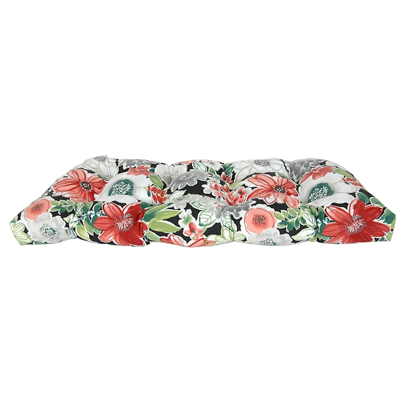 Make moments enjoying the great outdoors even more pleasing with our Tamani black floral outdoor wicker settee cushion, perfect for boosting the comfort and style of your favorite outdoor spaces. This wicker settee cushion features all-around piping to give it a little personality and look its best amongst the elements.