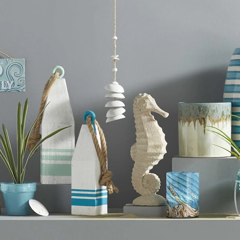 A jack-of-all-trades, including graphic designer, carpenter, contractor, author and beloved reality TV host, Ty Pennington has created a new and exclusive collection for At Home. Give your decor a fresh splash with this wooden buoy with jute rope. It’s a great way to make a statement and a quick update. Hang this item, or place it on a shelf staged with some seashells… then sit back, relax and enjoy the beachy vibe.