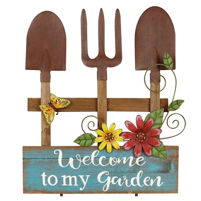 Add wonderful charm and vibrant color with our special “welcome to my garden” sentiment yard stake that will give your yard, garden or potted plants a big dose of personality. Constructed of durable wood and metal for many years of enjoyment.